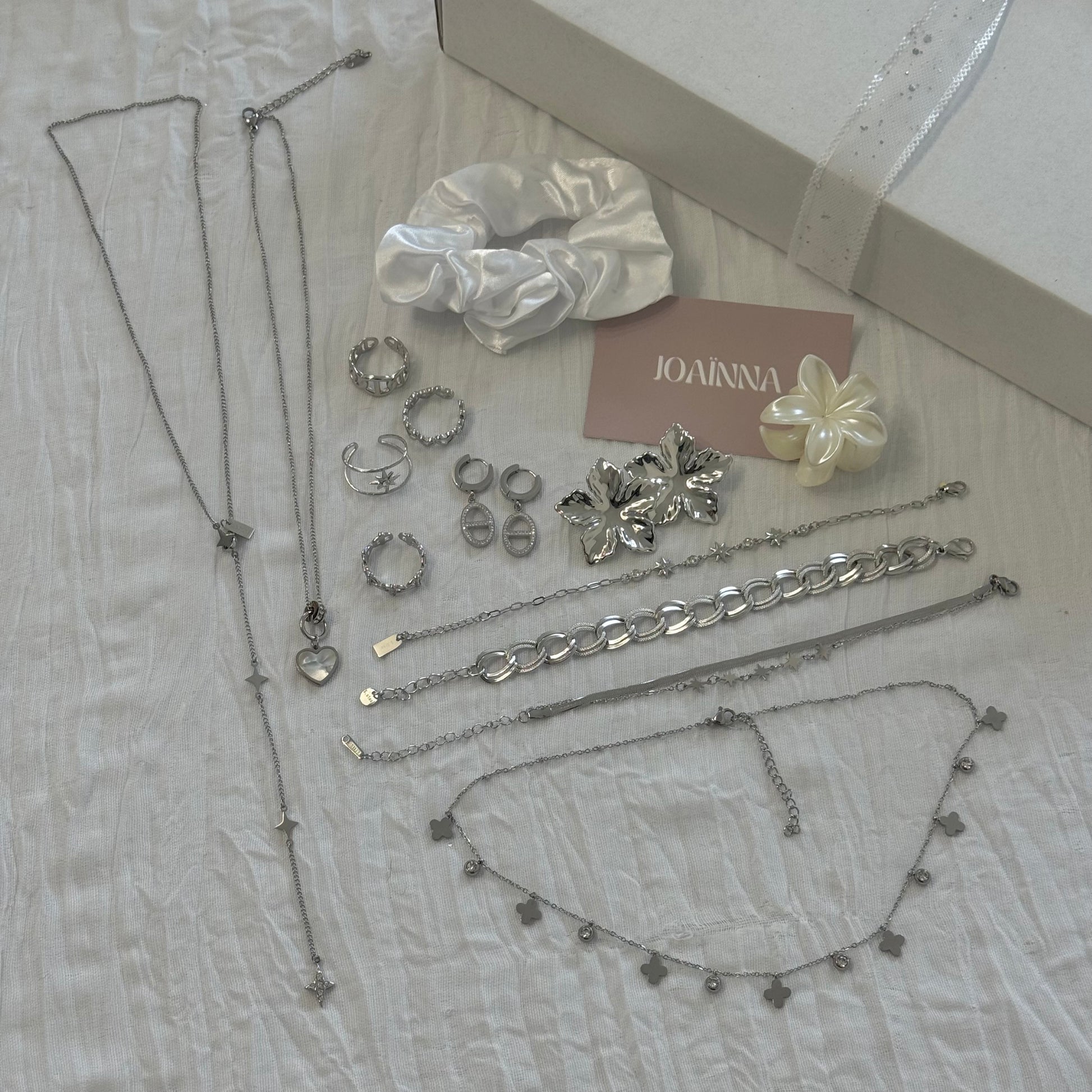 Chaque calendrier révèle 12 bijoux uniques en acier inoxydable, jamais vendus en boutique : boucles d'oreilles, bagues, colliers et bracelets ✨.